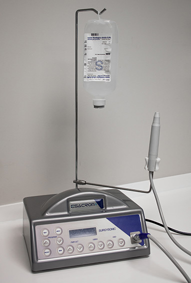 Bisturí Piezoeléctrico: Aparato que a través de vibraciones corta tejido duro, hueso, sin dañar ni cortar el tejido blando y así respetar zonas delicadas como la encía y la membrana sinusal. Se utiliza para cirugía de extracciones complicadas de piezas dentarias incluida elevación del seno maxilar y en implantes.