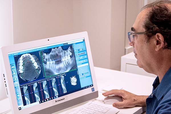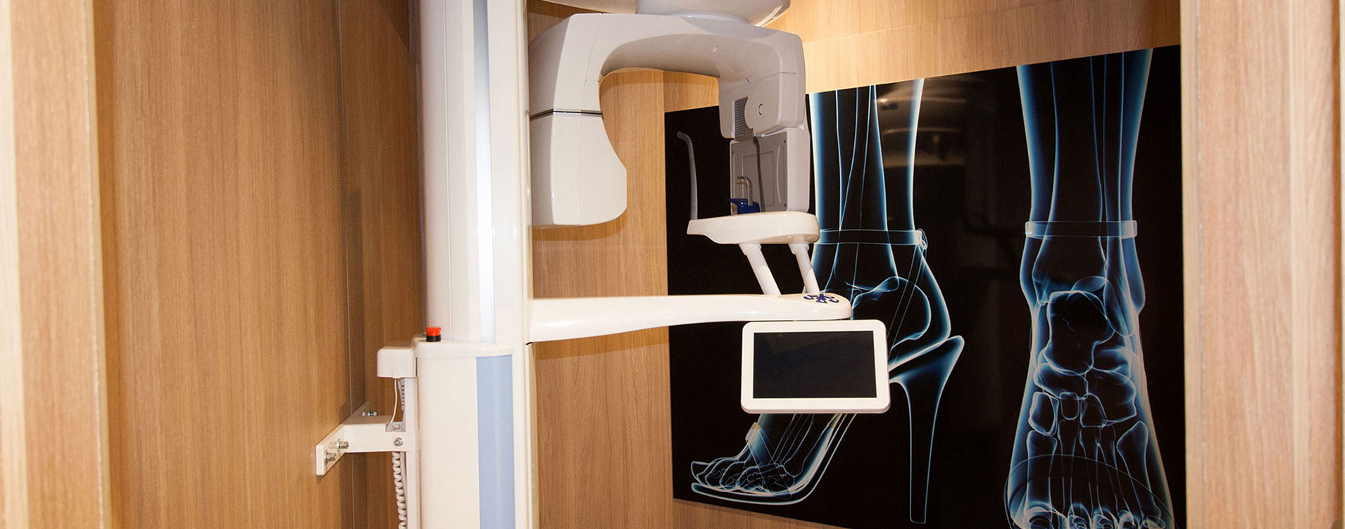 Aparato de escáner que permite realizar estudios mediante imágenes panorámicas o de cortes tomográficos (en 3 dimensiones) para diagnosticar lesiones óseas, dentarias y de seno maxilar, pudiendo realizar con mayor exactitud la cirugía implantaria, cirugía bucal y ortodoncia.